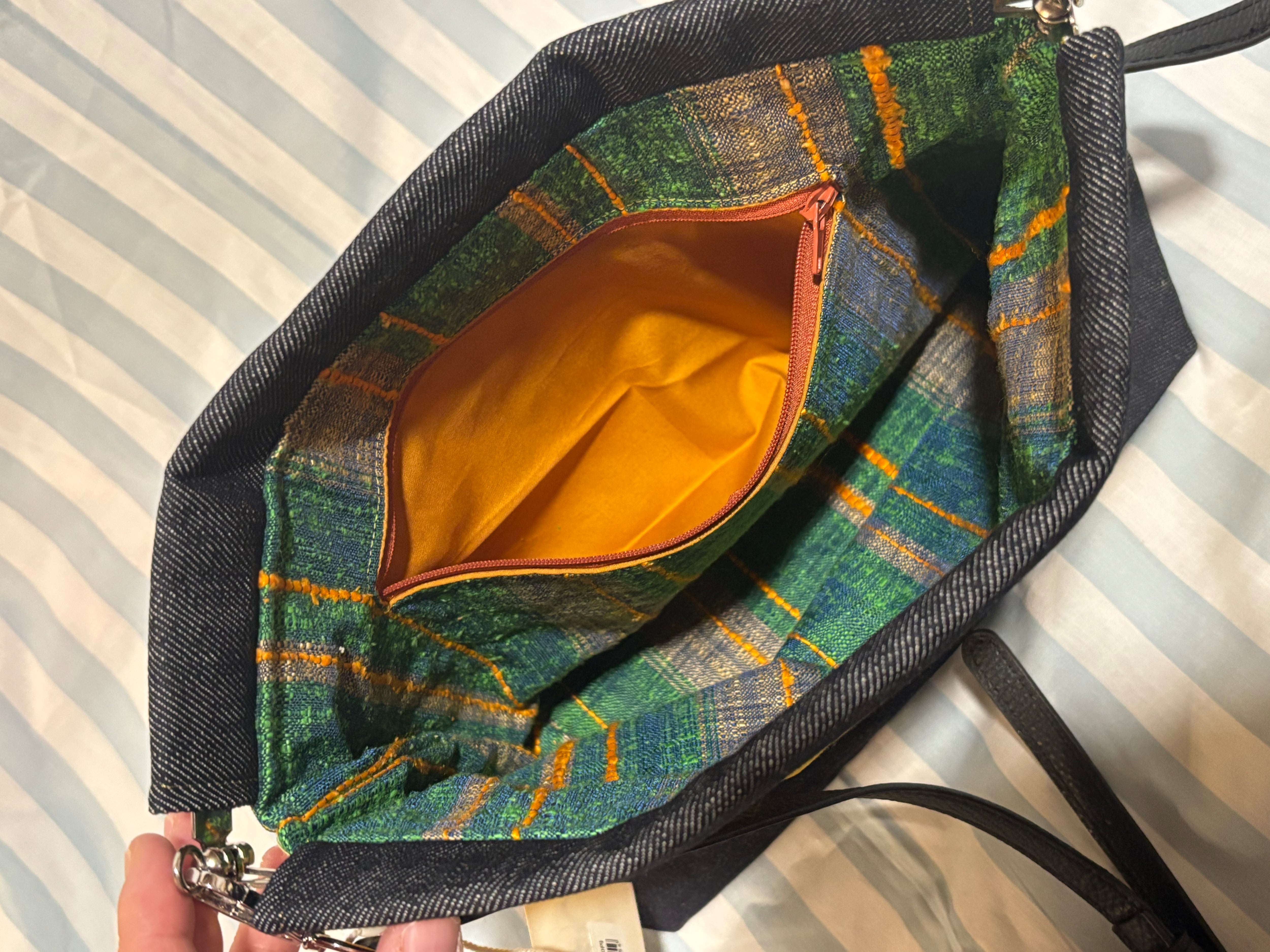 30cmのバネ口金を使用し、マチをたっぷり10cm取ってありますのでコンパクトな見た目ながらもたっぷり荷物を入れることができます!