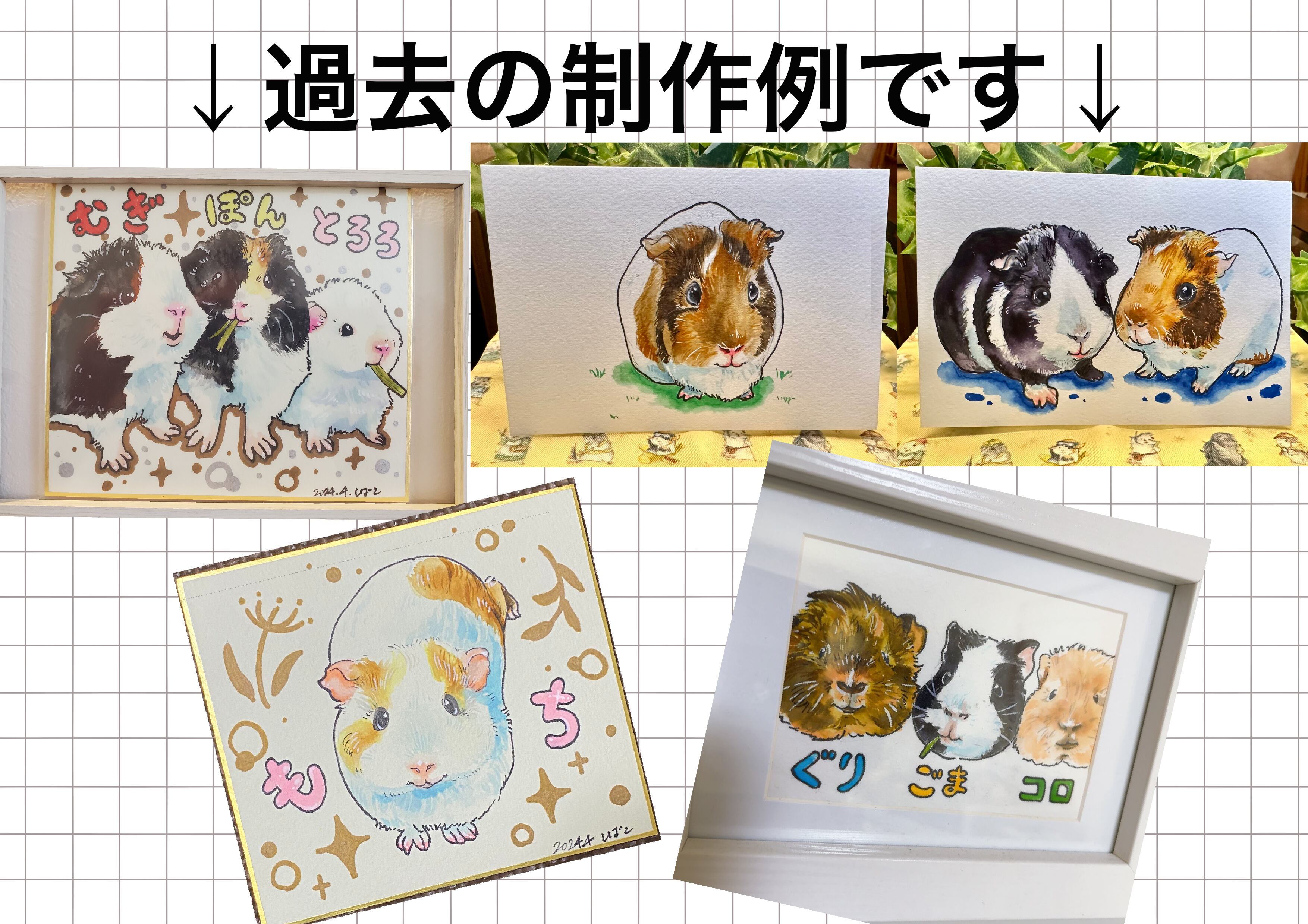 似顔絵は上限3匹まで、1枚にまとめてお描きします